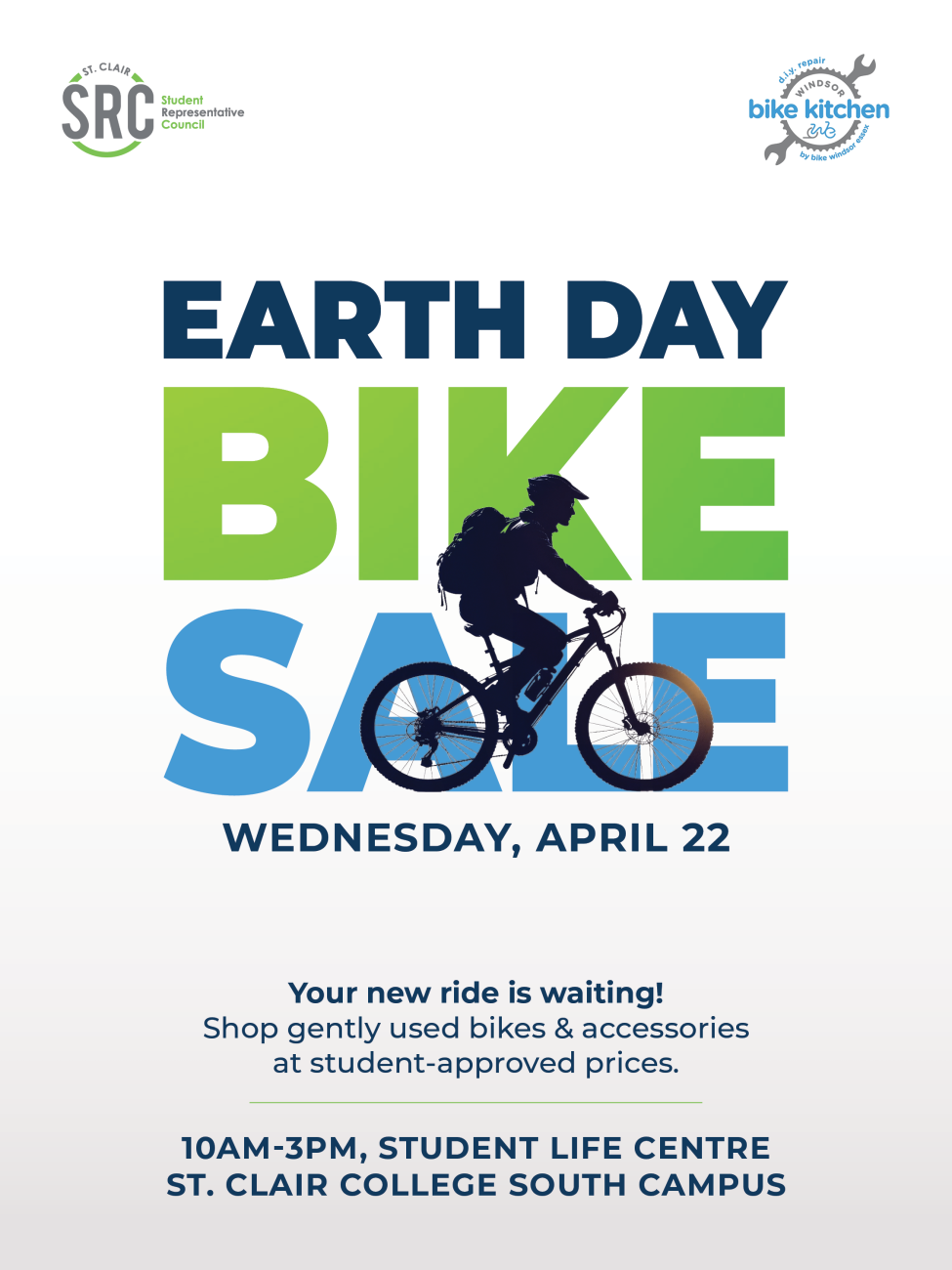 April 22, 2026 10:00 am - 3:00 pm Free Student Life Centre Earth Day Bike Sale Happy Earth Day!Shop gently used bikes and accessories at student approved prices, in our SLC.