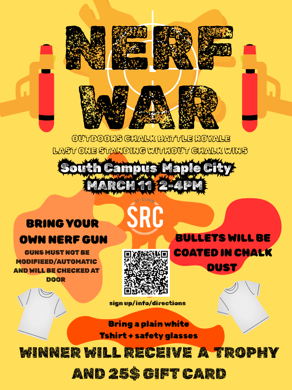 Bring your own nerf gun - guns must not be modified/automatic and will be checked at the door