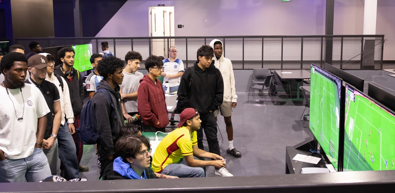 Fri, October 3, 2025 Our VP Ali drew a crowd with his Kickoff Cup event in the Esports Nexus last month. Students competed in a FIFA tournament for a shot at winning their choice of soccer jersey and other prizes. Photos by Om Vatish.