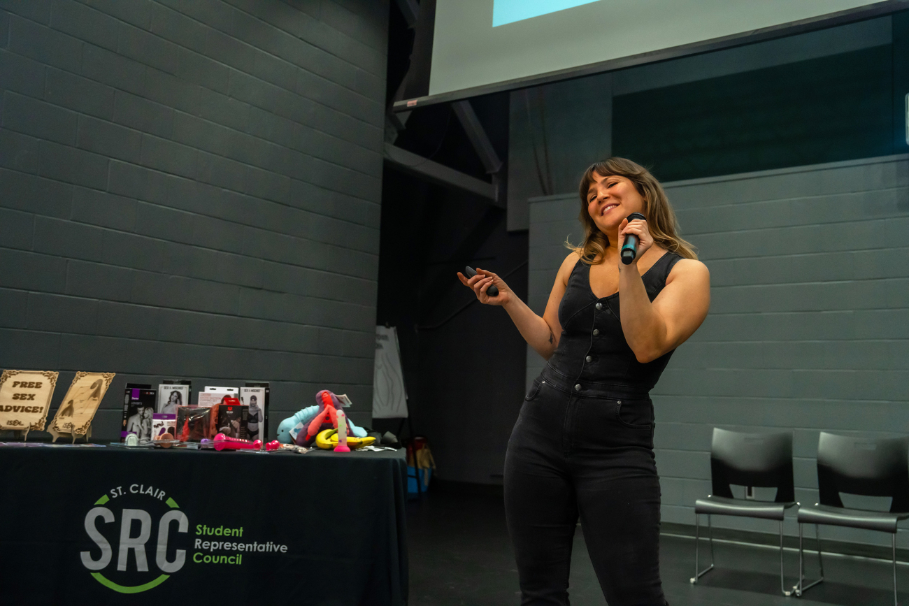 Wed, December 3, 2025 St. Clair students got a sexual education with a minor in sex toys at our Sex Ed Bingo event last week! Sex Educator and Advocacy Professional Sabrina Baldini led the evening, winning students over with her honesty and humour.